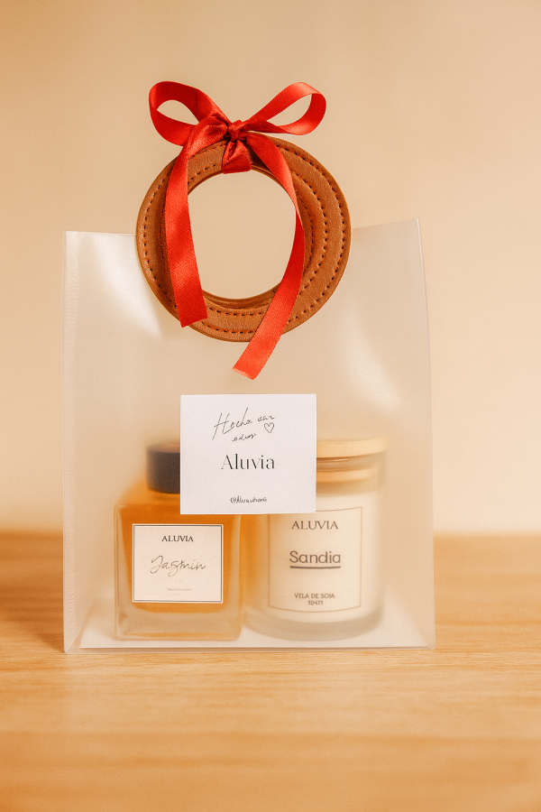 La bolsa es versátil y puede adaptarse a cualquier combinación de productos: podés armarla con home spray, body splash, velas, difusores o el set que más te guste. Ideal para regalos especiales, agradecimientos, fin de año y detalles personalizados.