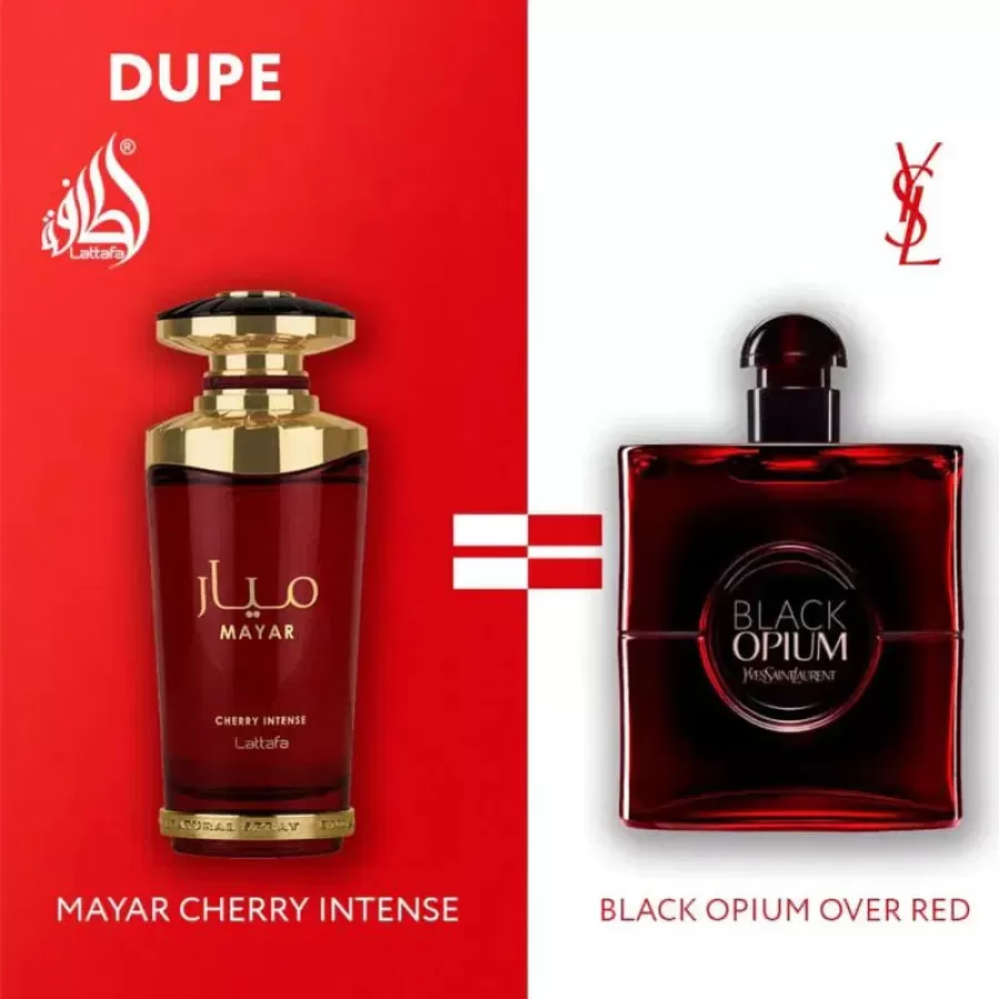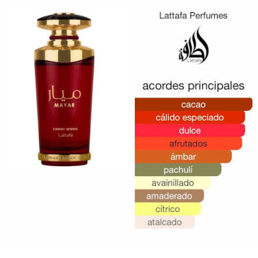 Mayar Cherry es un perfume pensado para quienes aman la cereza en su versión más moderna, dulce y llamativa. No es un cherry tímido: es jugoso, vibrante y con un toque sensual que aparece desde el primer spray. La fragancia abre con una cereza roja brillante, fresca pero dulce, que enseguida se mezcla con acordes cremosos que le dan ese efecto envolvente tan característico de Lattafa.