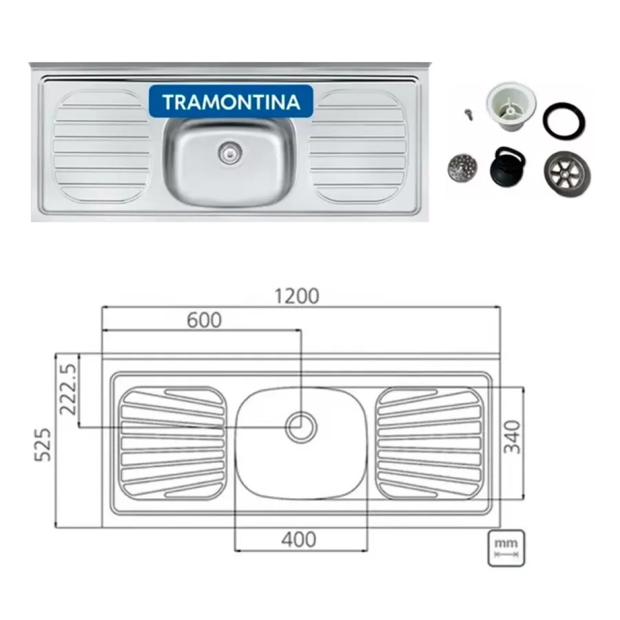 Mueble aéreo (Medidas en cm: Alto 46 x Ancho 120 x Prof. 30) Mueble bajo mesada (Medidas en cm: Alto 87 x Ancho 120 x Prof. 52) mesada Tramontina (Medidas en cm: Ancho 52 x Largo 120).