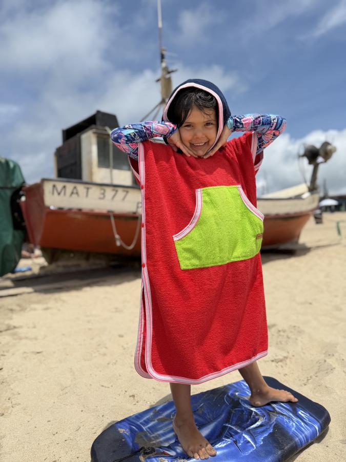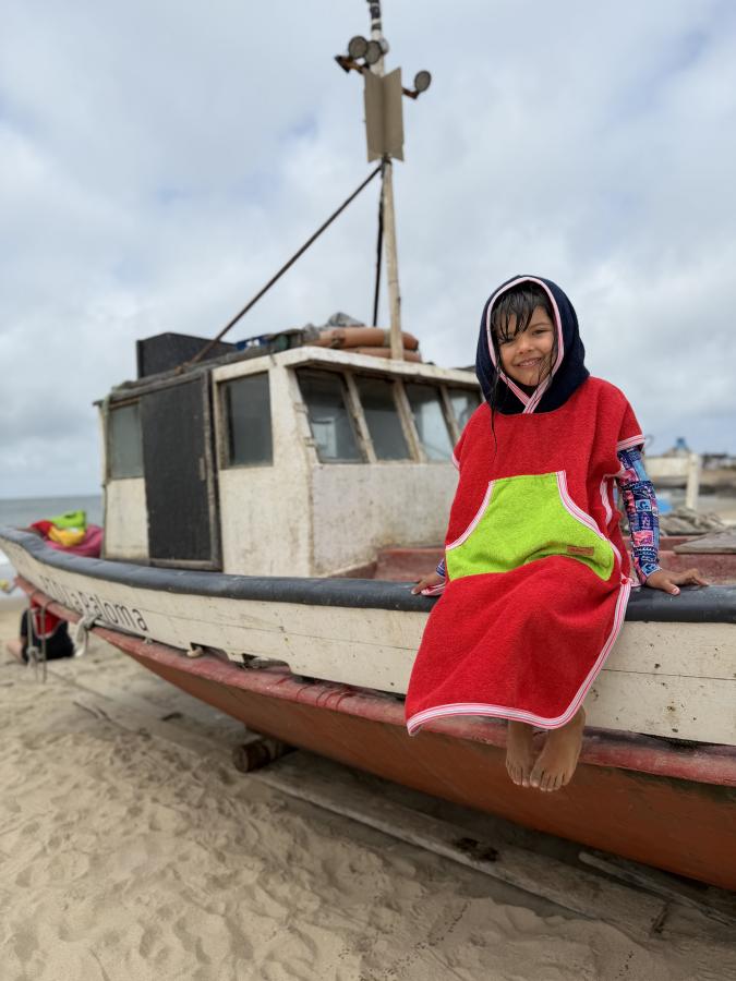 Apenas salen del agua, el poncho los envuelve, absorbe la humedad y les devuelve el calorcito al instante. Nada de niños temblando… ¡problema resuelto!