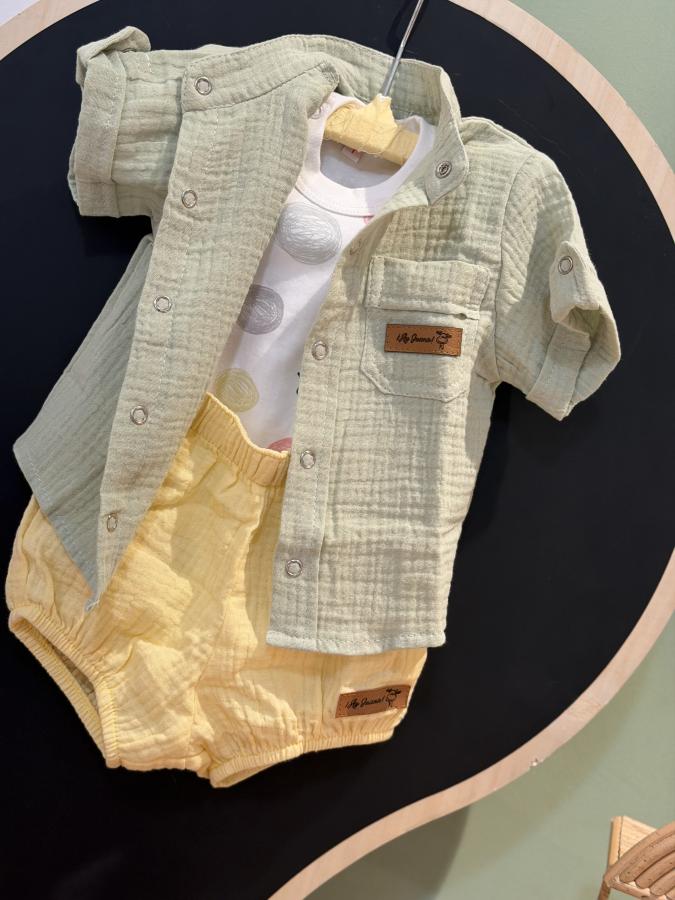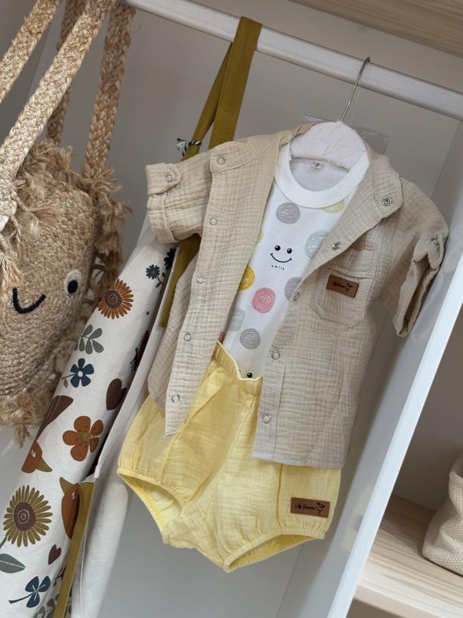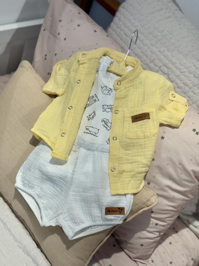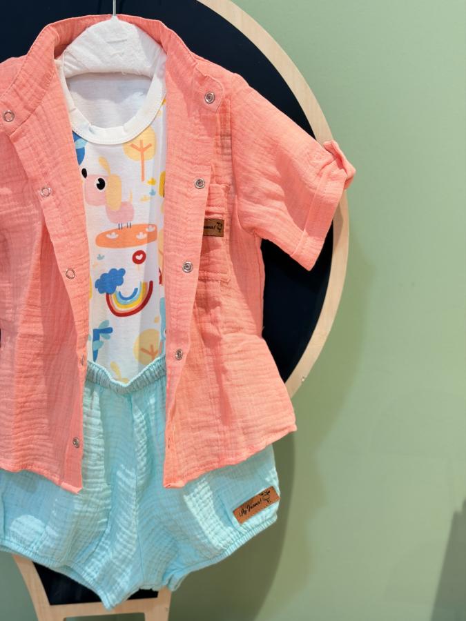 El Conjunto Muselina para Bebés es la elección ideal para mantener a tu pequeño fresco y feliz durante los días soleados. Diseñado con sutiles estampados y fabricado en suave muselina, este conjunto es perfecto para cualquier ocasión, ya sea en casa o al aire libre.
