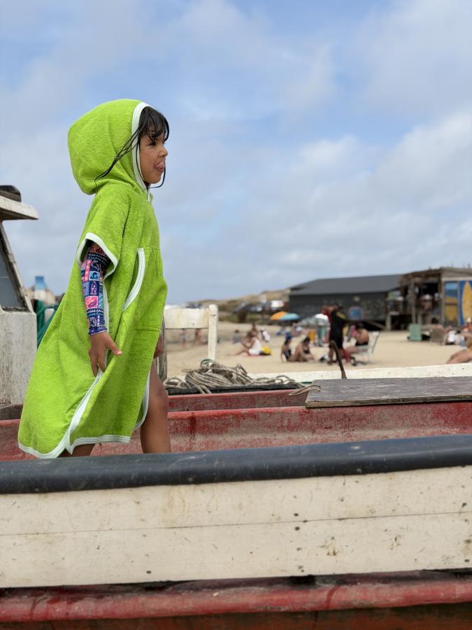 Apenas salen del agua, el poncho los envuelve, absorbe la humedad y les devuelve el calorcito al instante. Nada de niños temblando… ¡problema resuelto!