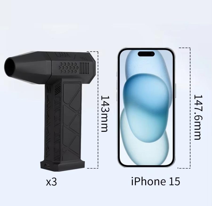 El Turbo Soplador X3 Mini está alimentado por una batería de litio de 21V, cuenta con un motor sin escobillas de alta velocidad capaz de alcanzar 110.000 RPM y una velocidad del viento de 45 m/s.