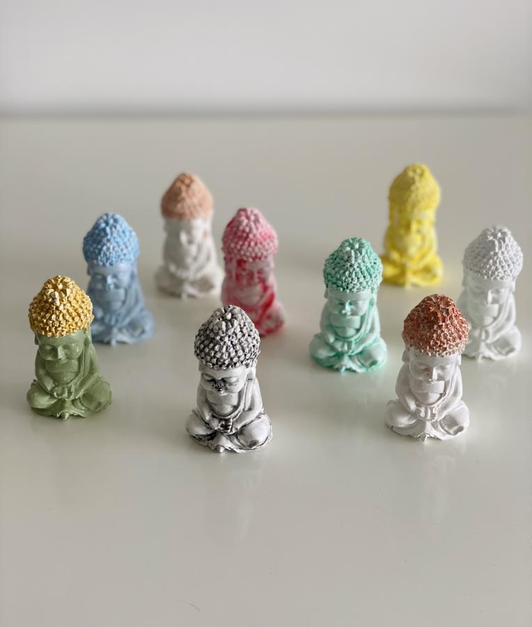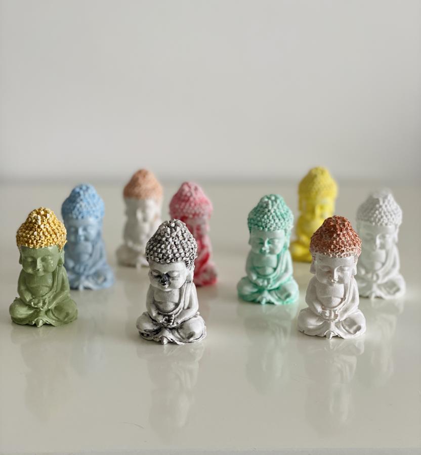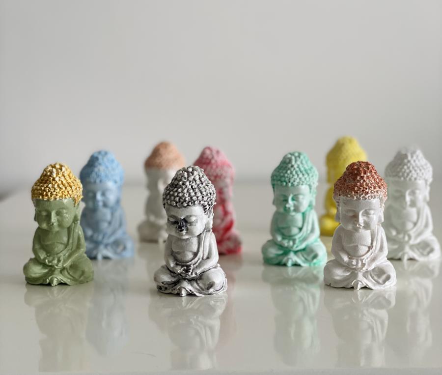 Incluye 1 Figura de Buda. Guardián de la calma interior. Ideal para crear un ambiente zen. Transmite estabilidad y quietud. Material: Yeso y cemento. Medidas: Alto 6.5 cm x Ancho 3.5 cm x Profundidad 2.7 cm. Sellada y Barnizada.