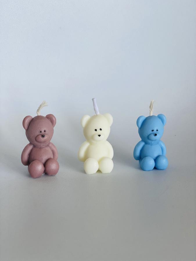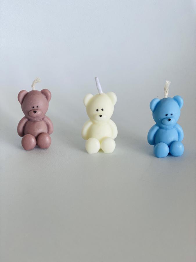 Incluye 1 Vela Osito Teddy Baby. Ternura en cera de soja, perfecta para decorar tu ambiente o como souvenir para toda ocasión. Cera 100% natural, combustión limpia. Material: Cera de soja. Medidas: 5 cm x 2.5 cm.