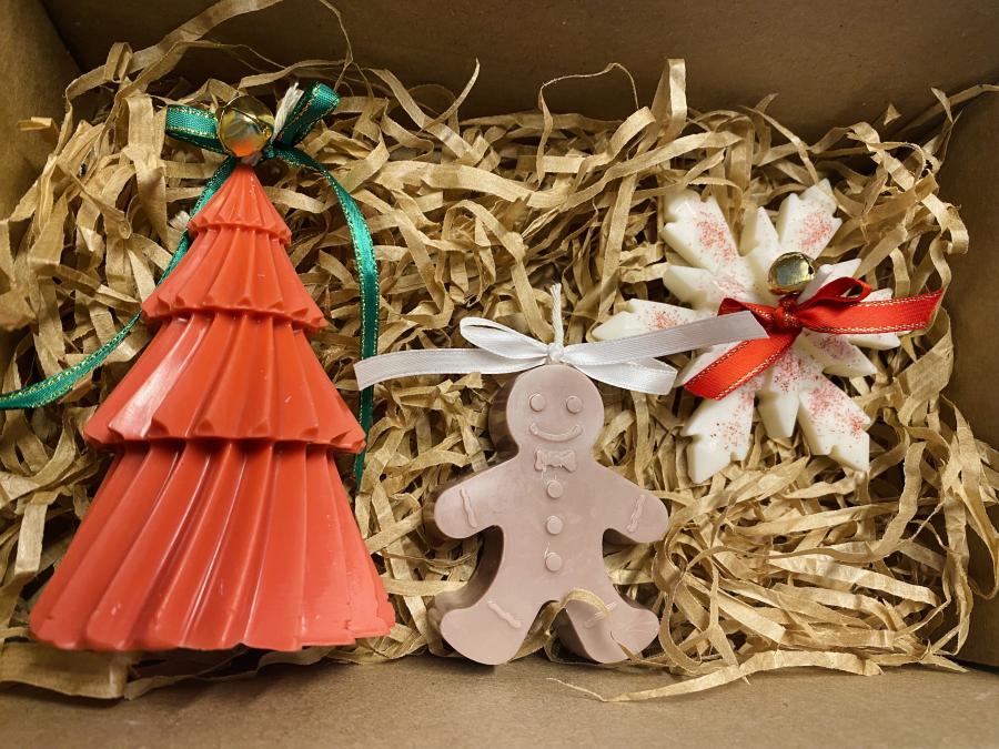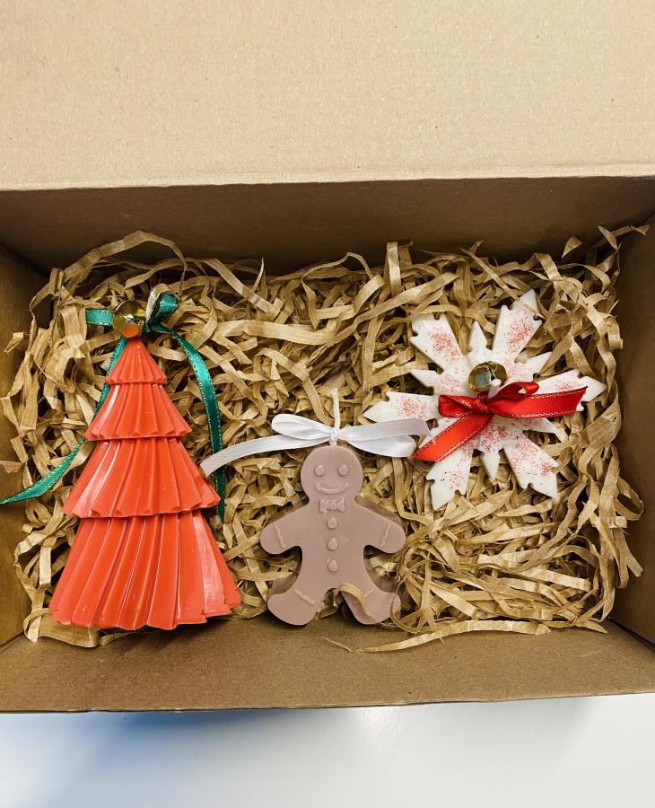 Vela Árbol navidad, Muñeco Jengibre, Copo de Estrella. Decora y perfuma tu hogar con el espíritu de las fiestas. Material: Cera de soja.