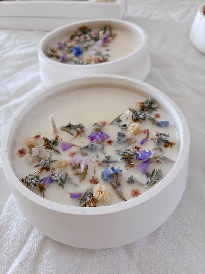 Vela aromática 100% cera de soja - con deco botánica.