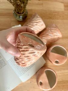 Diseño piezas cerámicas artesanalmente. Modeladas, esmaltadas y horneadas a mano, una por una.