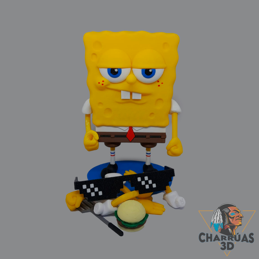 La figura semi-articulada de Bob Esponja es una pieza impresa en 3D, diseñada con una explosión de colores y un estilo llamativo, ideal para fans, coleccionistas y amantes del mundo 3D.