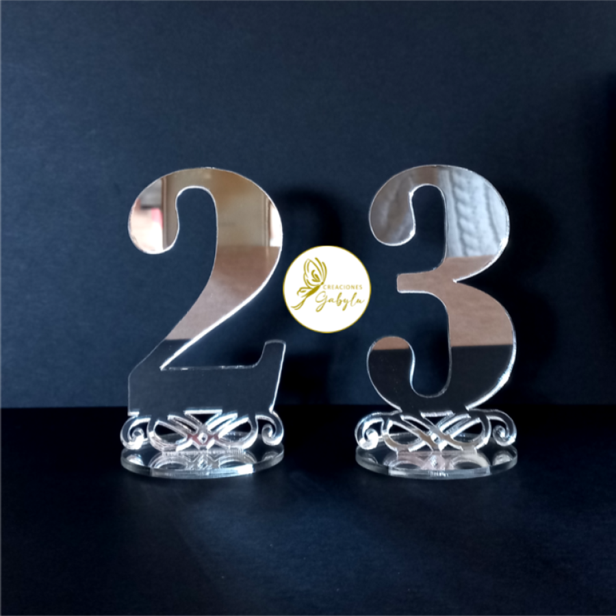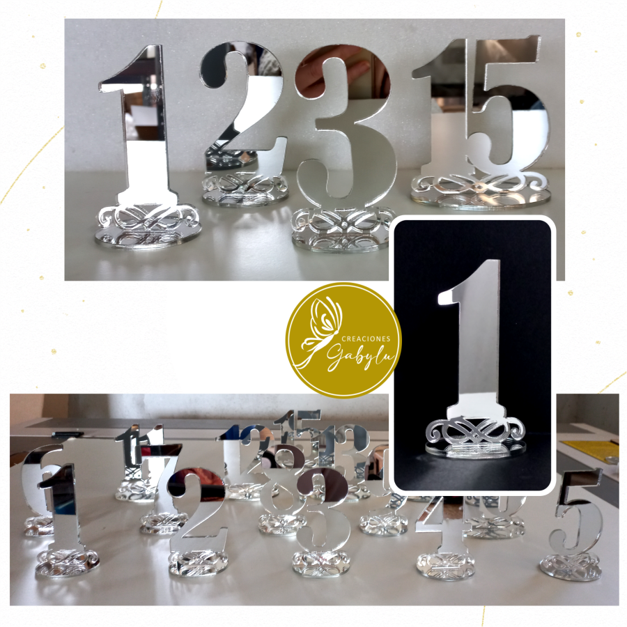 El artículo es realizado en acrílico espejo de 3 mm cortado con láser, disponible en dorado o plateado.