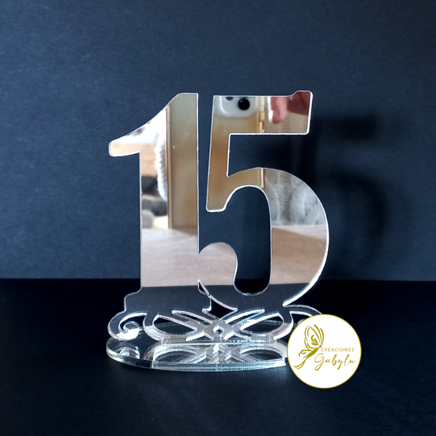 El artículo es realizado en acrílico espejo de 3 mm cortado con láser, disponible en dorado o plateado.