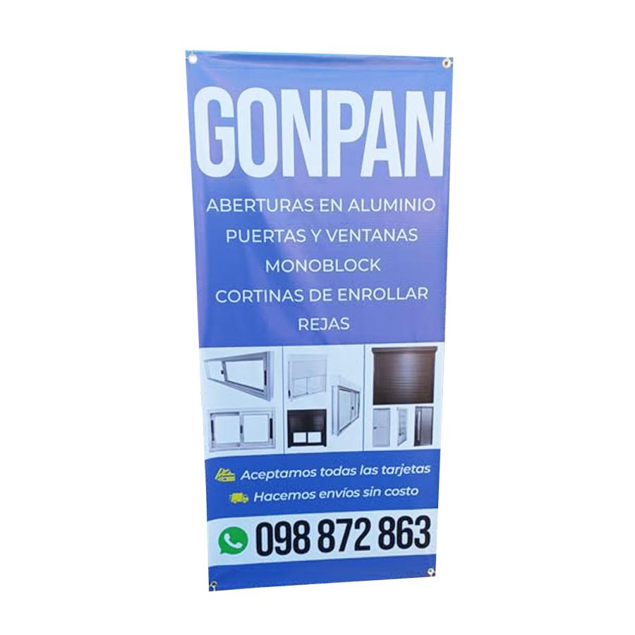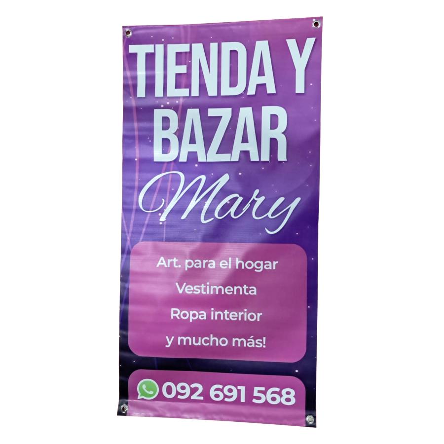 Banner con diseño personalizado. Impresión digital full color sobre lona para interior y exterior, con 4 ojales.