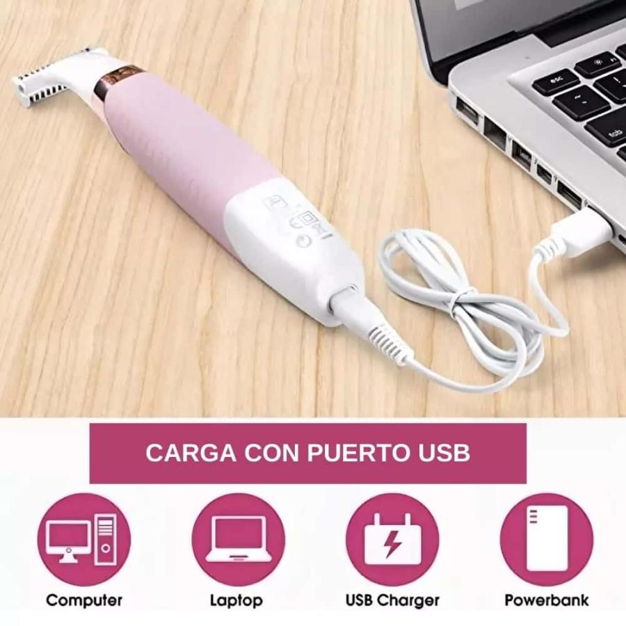Diseñada para ser utilizada por cualquier género, esta afeitadora ofrece una depilación rápida y eficiente gracias a su motor de 3W y su carga USB conveniente.