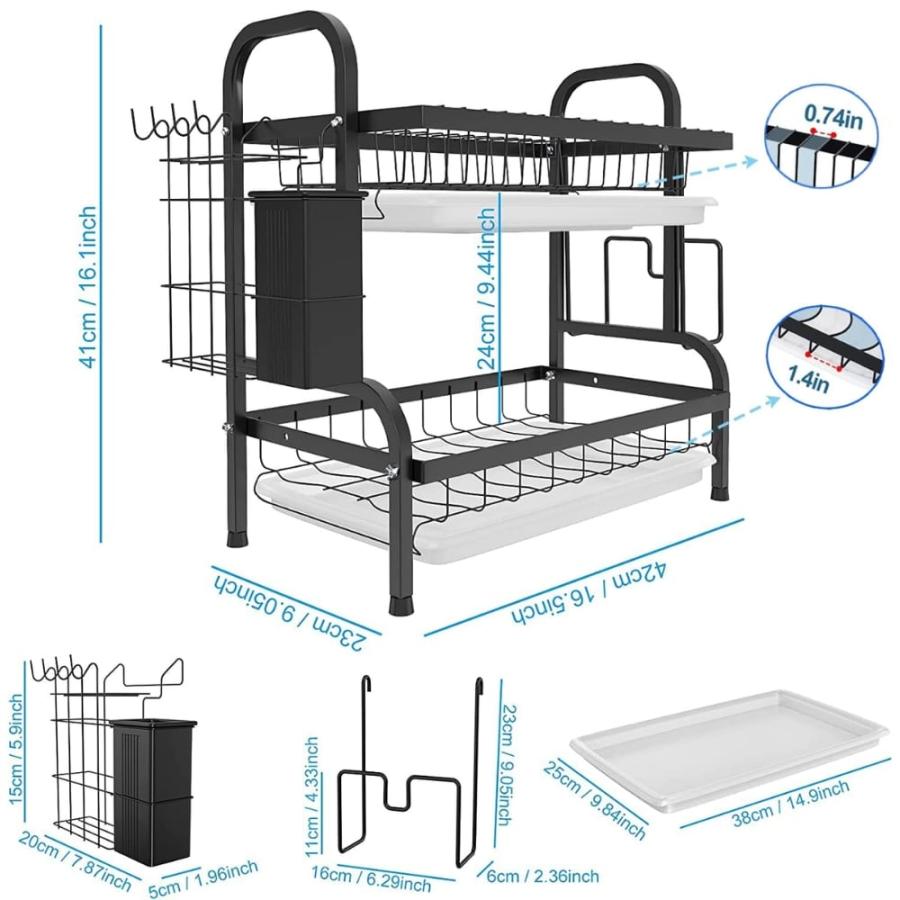 Este escurridor de platos para mesada doble piso es la solución perfecta para mantener tu cocina organizada y maximizar el espacio. Con su diseño compacto y elegante, este escurridor de 41 cm de alto, 25 cm de ancho y 42 cm de largo, es ideal para cualquier tipo de mesada.