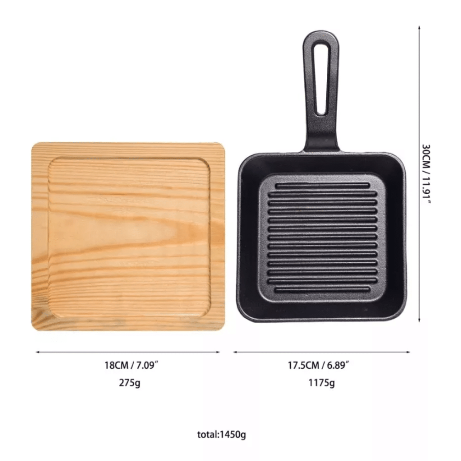 ¡Cociná como un chef en tu propia casa! Nuestra sartén plancha de hierro fundido es perfecta para lograr esas marcas a la parrilla que tanto te gustan. Y eso no es todo ¡incluye una tabla de madera para servir tus creaciones directamente a la mesa!