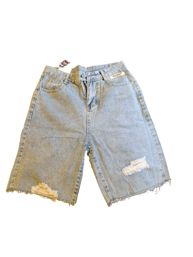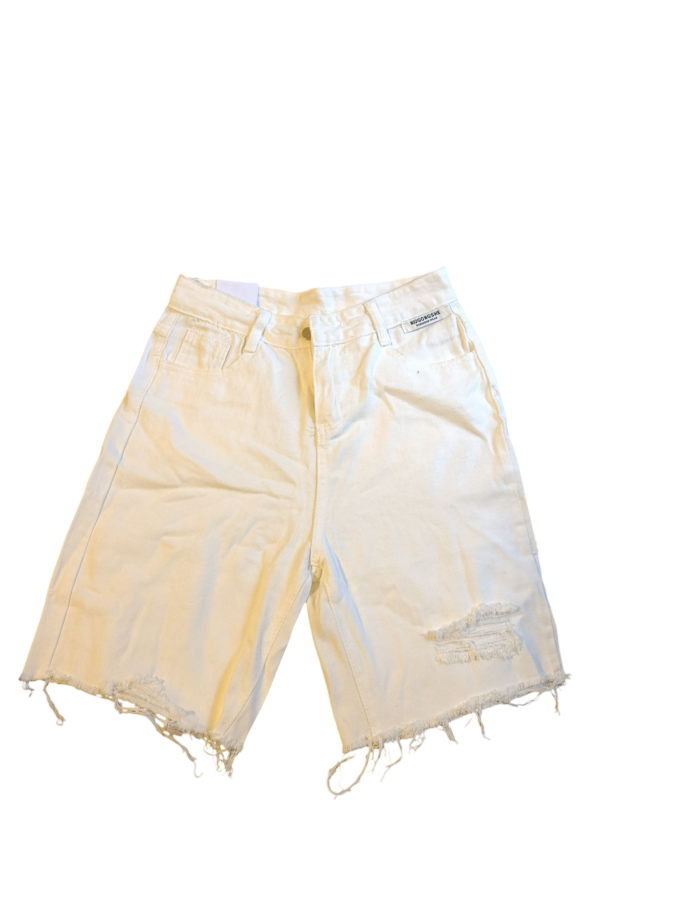 Bermuda rasgada de dama en color jean (talle M) y color blanco talle L.