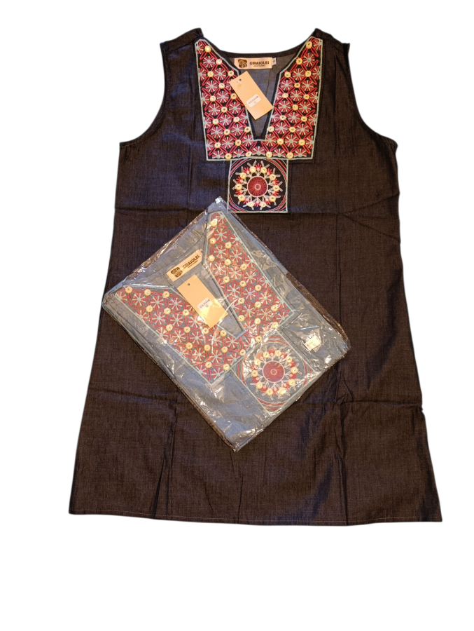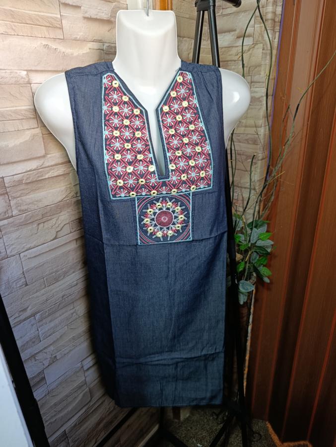 Vestido de dama en Jean con estampado al frente hermosa calidad y elegante.