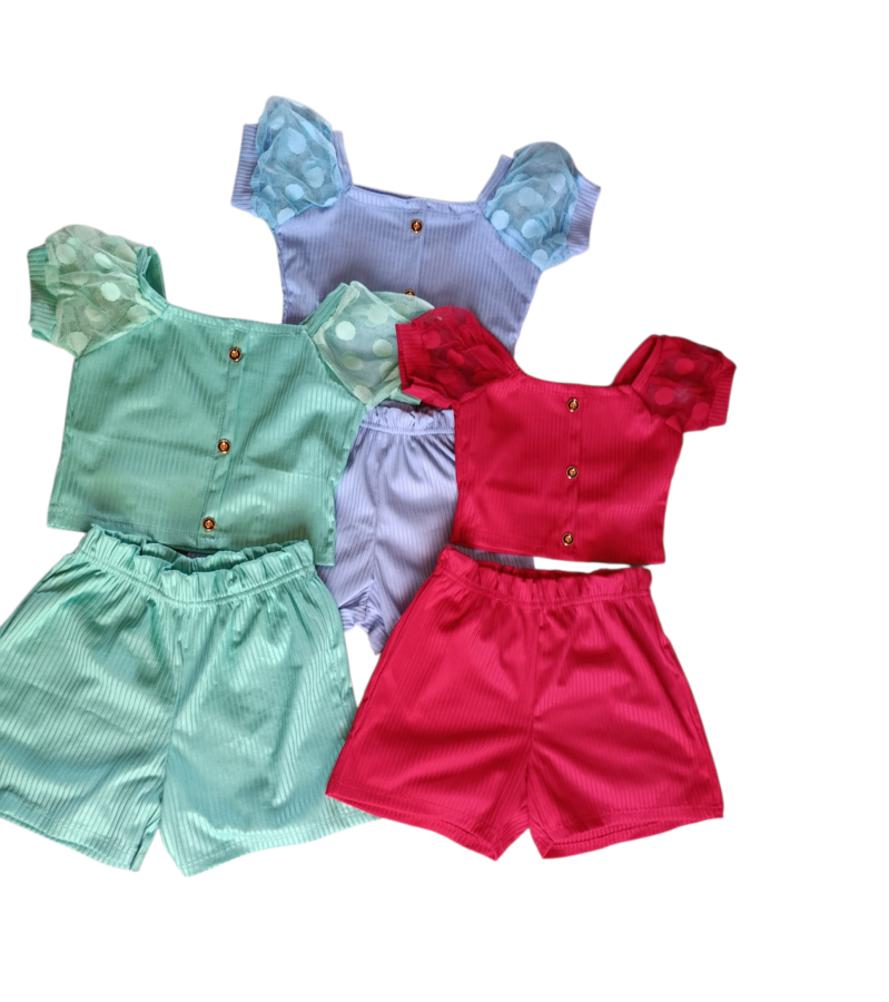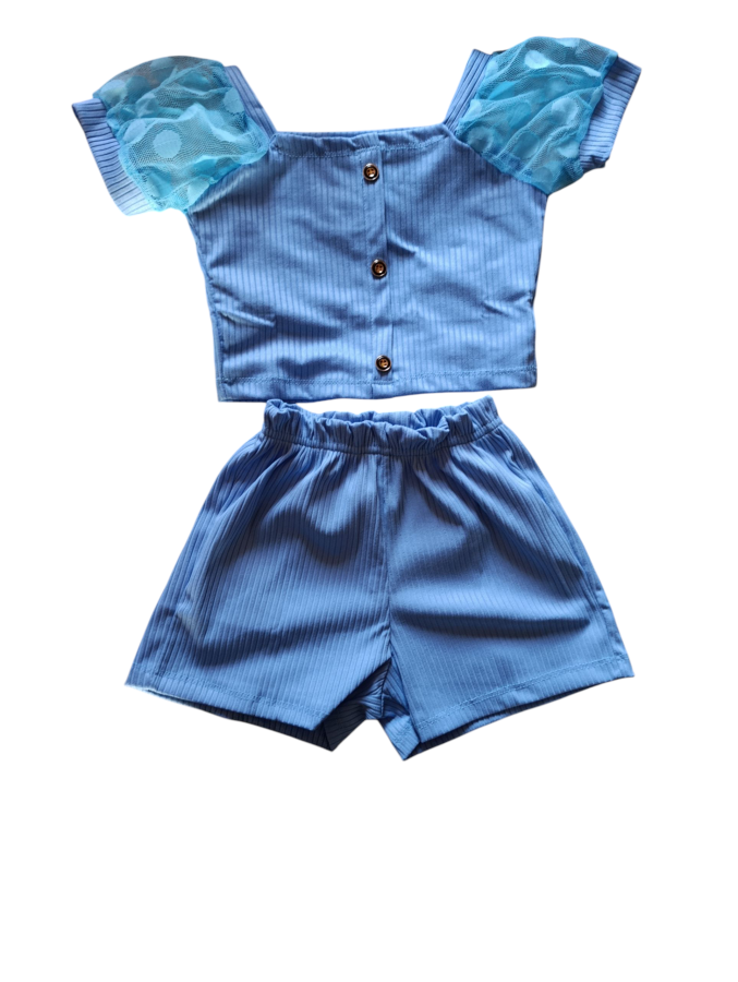 El top tiene mangas con tul en colores lisos desde el talle 2 al talle 8.