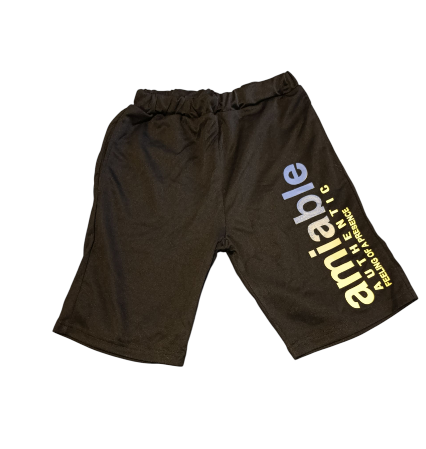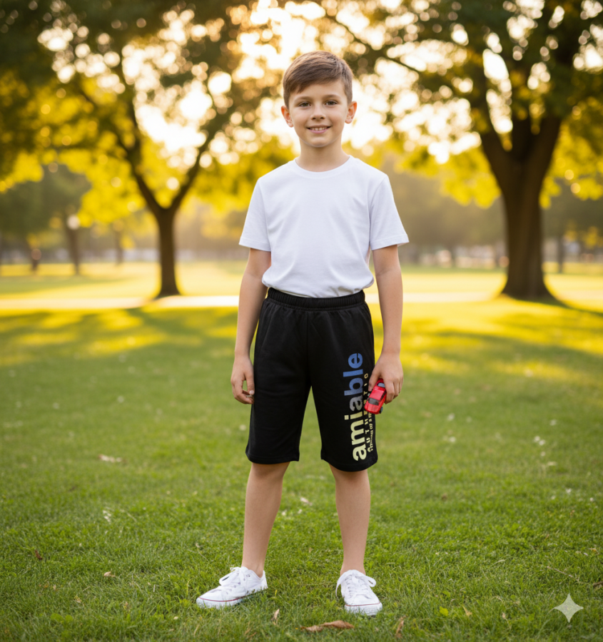 Bermuda negra deportiva de niño con estampa al costado.