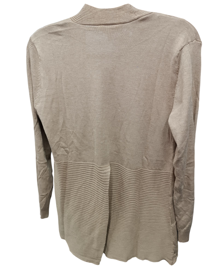 Saco de dama fino con tajo detrás en la espalda en colores beige y negro.