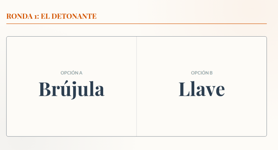 • Cómo usarlo: Proyecta la diapositiva del turno. Aparecerán dos palabras (ejemplo: Reloj vs. Desierto o Secreto vs. Megáfono). Los alumnos deben redactar un relato breve donde elijan una de ellas (o ambas, según el nivel de dificultad) como eje central de la trama.
