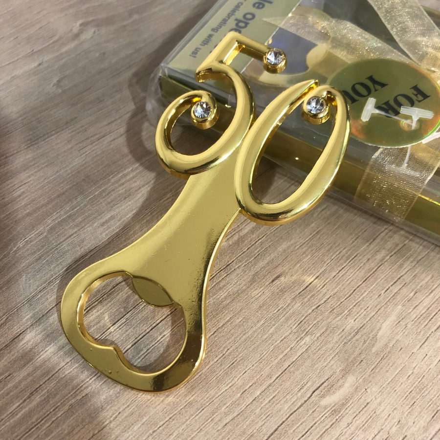 Ya sea para un cumpleaños, boda o aniversario especial, estos abridores de botellas color dorado son el detalle perfecto para sorprender a tus invitados.