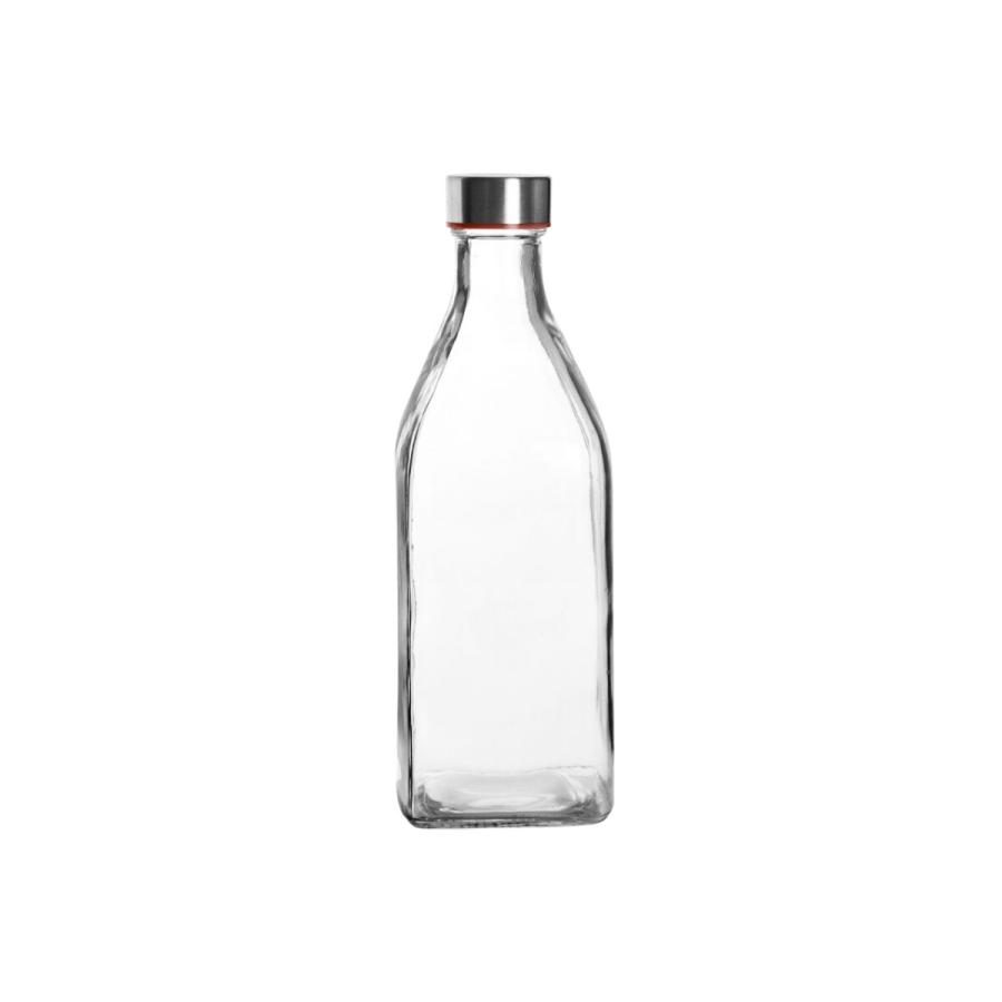 Fabricada en vidrio de alta calidad, esta botella es libre de BPA, lo que garantiza que tus bebidas se mantengan frescas y sin contaminantes. Su tapón roscado asegura un cierre hermético, evitando derrames y manteniendo el sabor de tus líquidos por más tiempo.