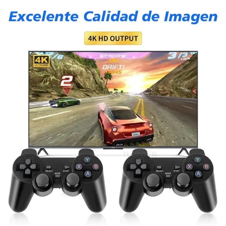 Disfruta de un juego fluido con nuestros controles inalámbricos de 2.4G. Perfectos para configuraciones HDMI 4K, vienen con dos controles ergonómicos y cable extensor HDMI para una experiencia de juego superior.