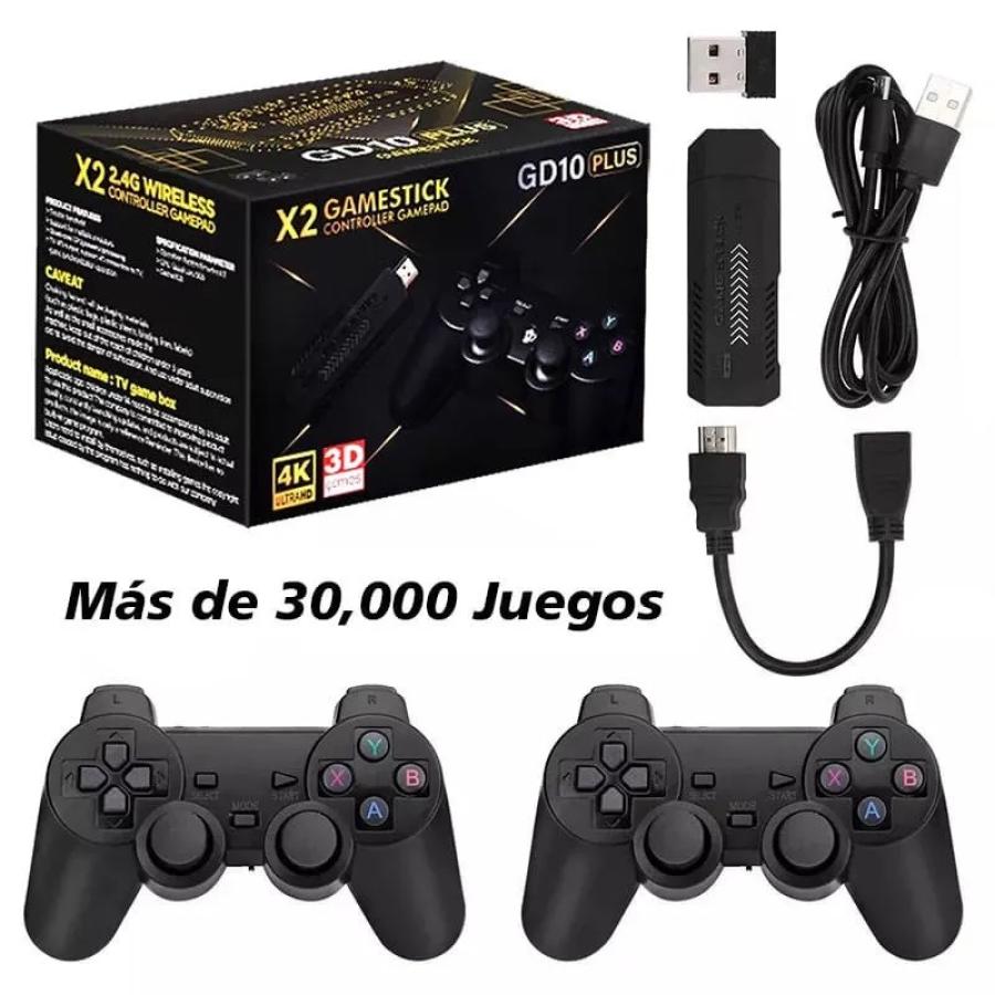 Desbloquea un mundo de juegos con nuestro paquete todo en uno: game stick, cable extensor HDMI, tarjeta SD de 64 GB llena de juegos, receptor inalámbrico, cable USB y dos controles ergonómicos. ¡Listo para jugar de inmediato!