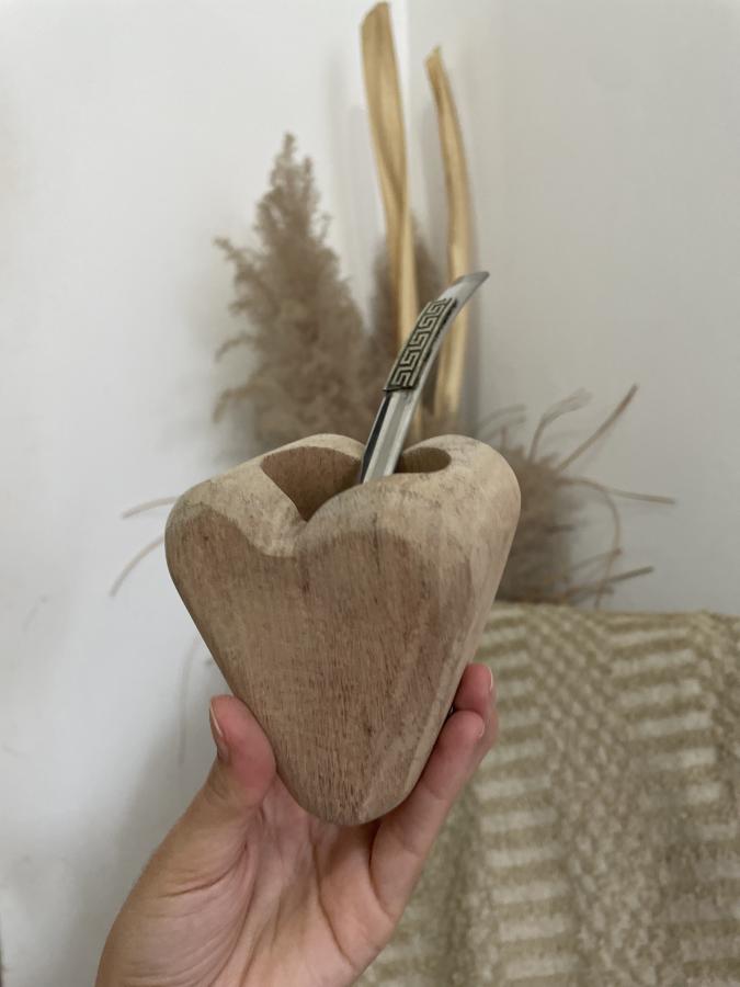 Mate con forma de corazón de algarrobo blanco (para pintar).