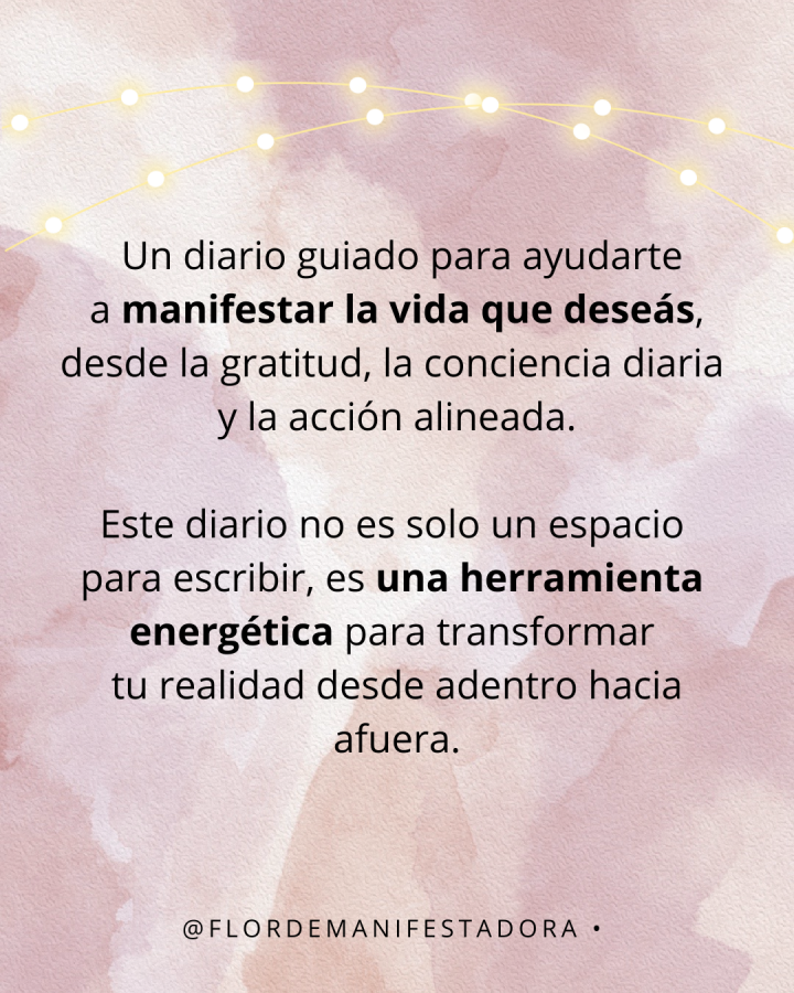 El Diario de Manifestación está diseñado para acompañarte día a día en el camino hacia tus sueños, con herramientas prácticas que te ayudan a manifestar desde la claridad y la intención.