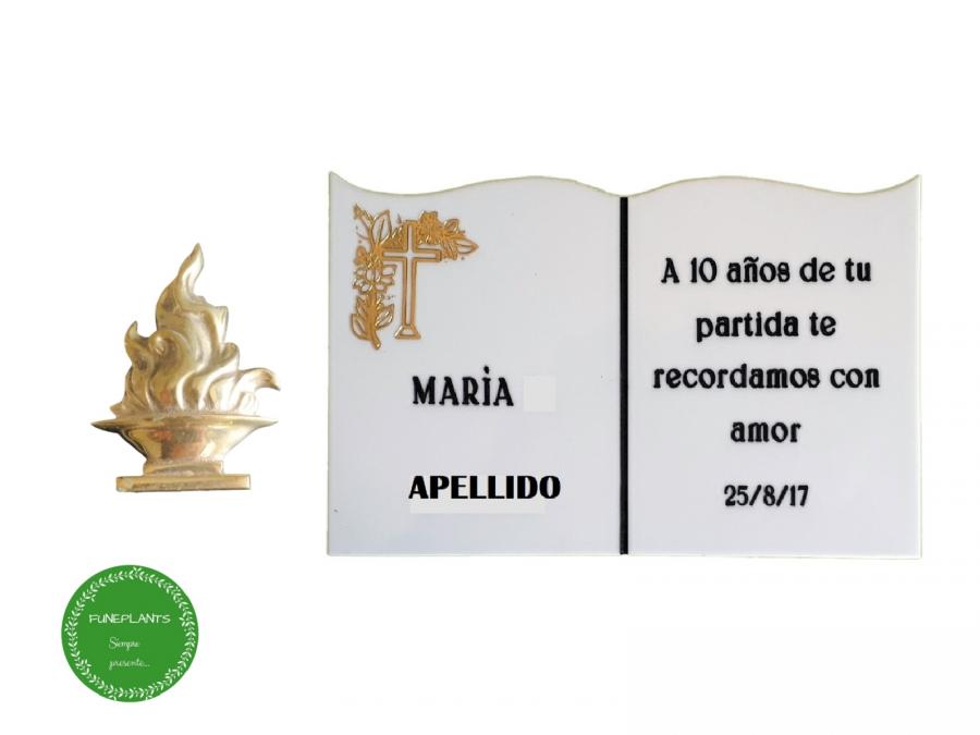 Placa De Acrílico N° 9 Para Cementerio Con Llama chica de bronce.