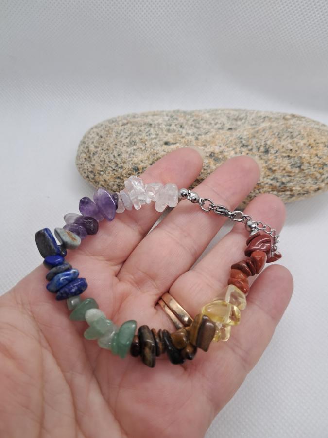 Pulsera de 7 chakras en piedras naturales escallas con cierre de acero.