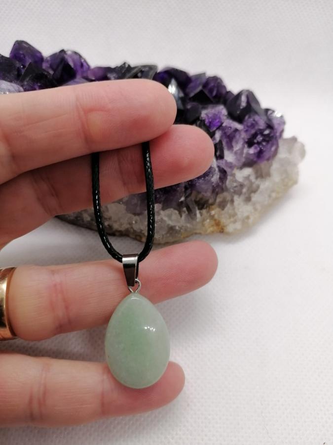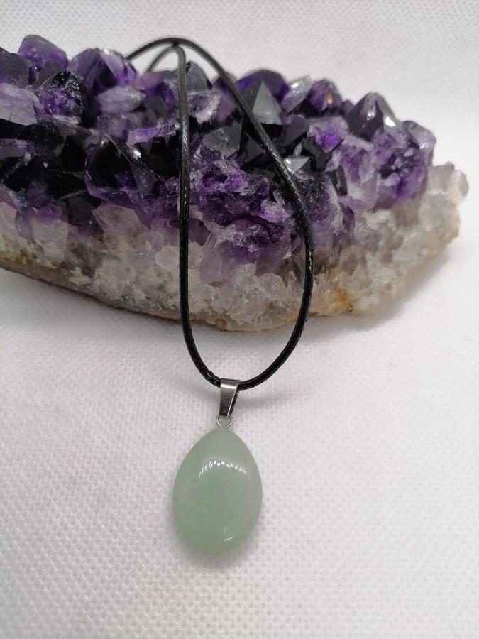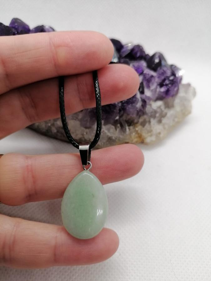 Dije gota en piedra natural cuarzo verde con cordón negro