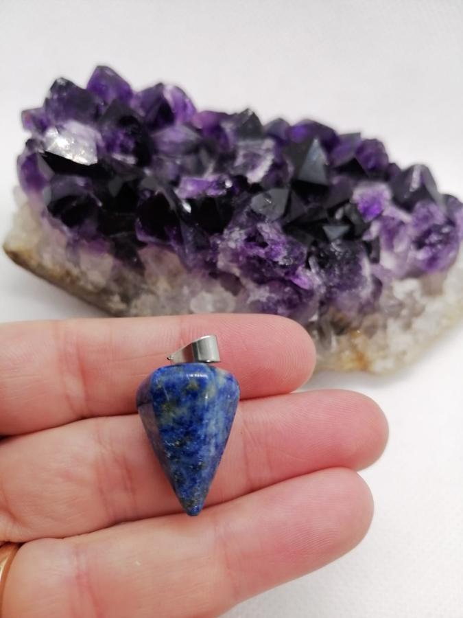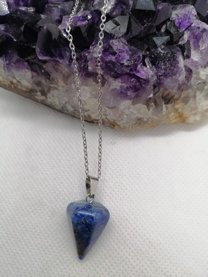 Dije péndulo en piedra natural lapislázuli con cadena de acero.