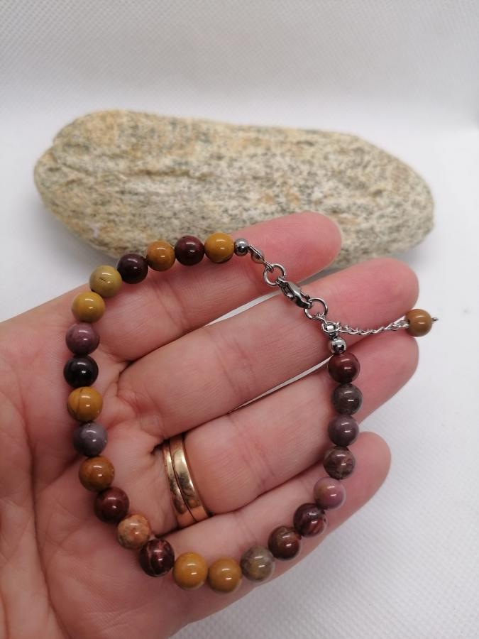 Pulsera en piedra natural mokaita en bolita de 6mm con cierre de acero.