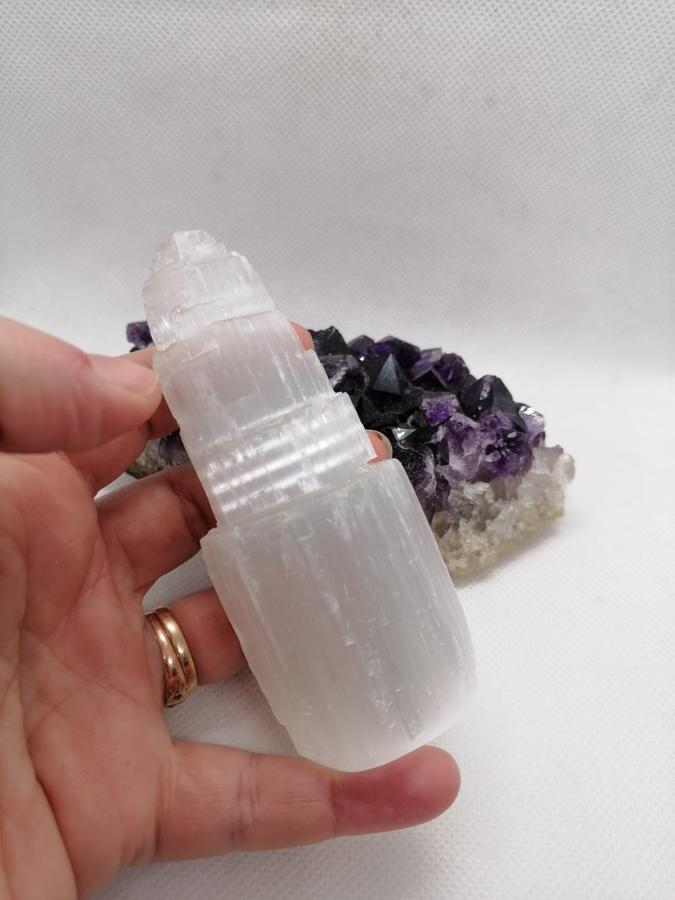 La selenita ayuda a calmar la mente y favorece la claridad y la lucidez.