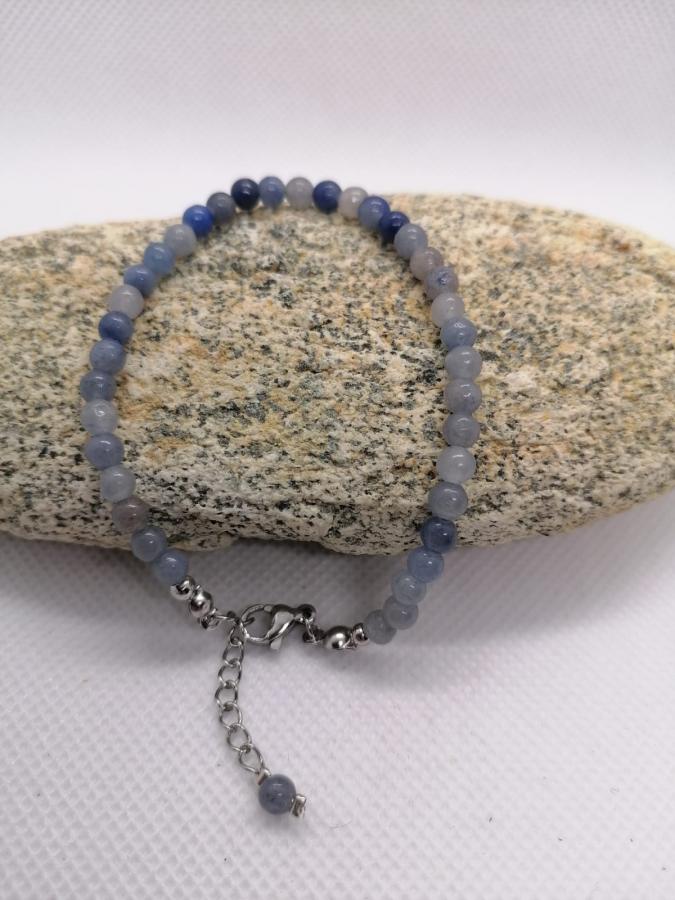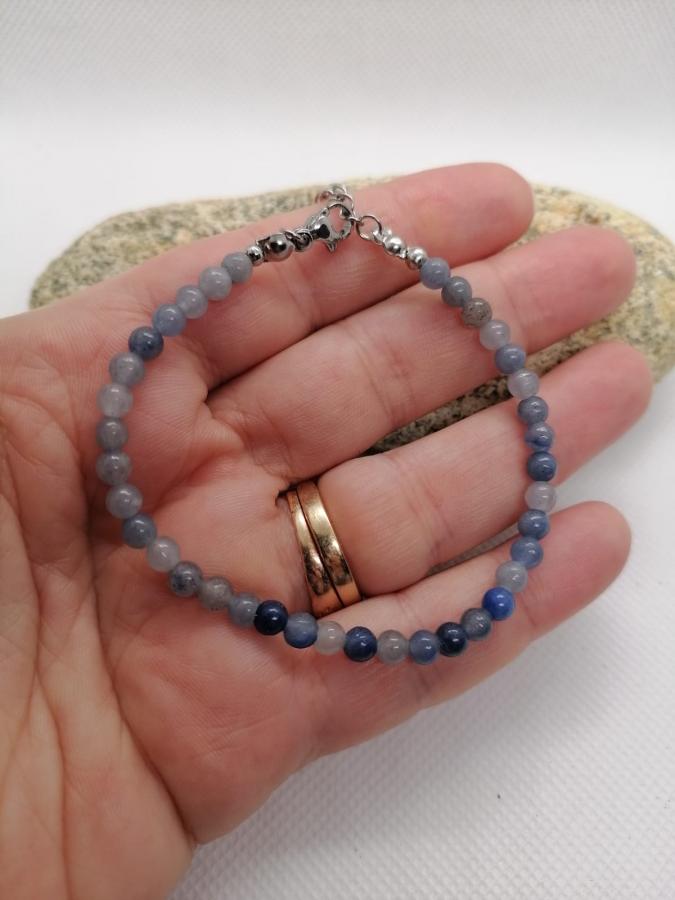 Pulsera cuarzo azul en piedra natural en bolita de 4 mm y cierre de acero.