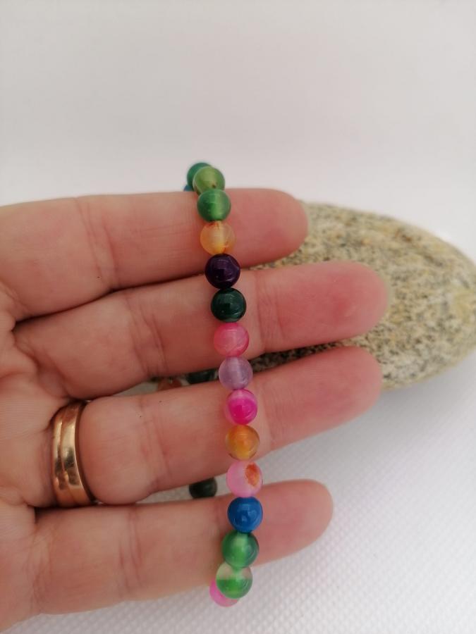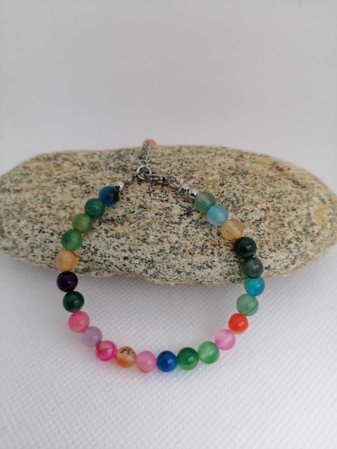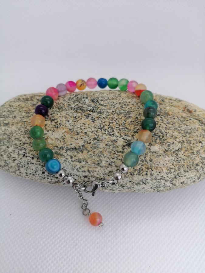Piedra natural ágata multicolor en bolita de 6mm con cierre de acero.