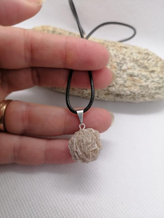 Dije en piedra natural rosa del desierto con cordón negro.
