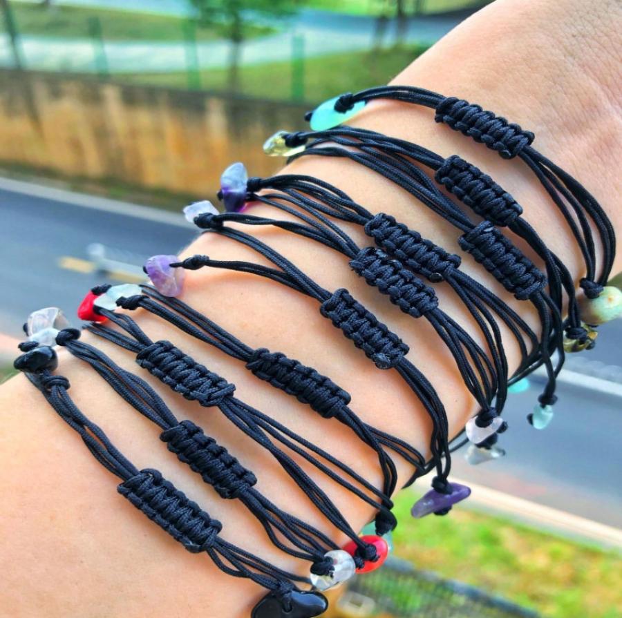 Pulsera en amatista en piedras naturales en escallas con hilo regulable.