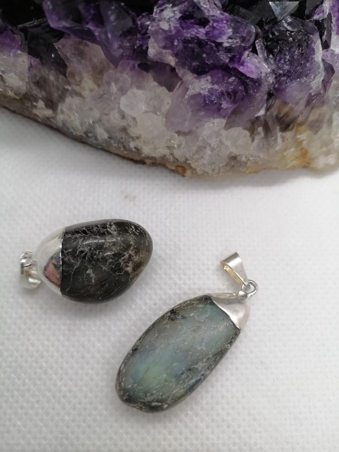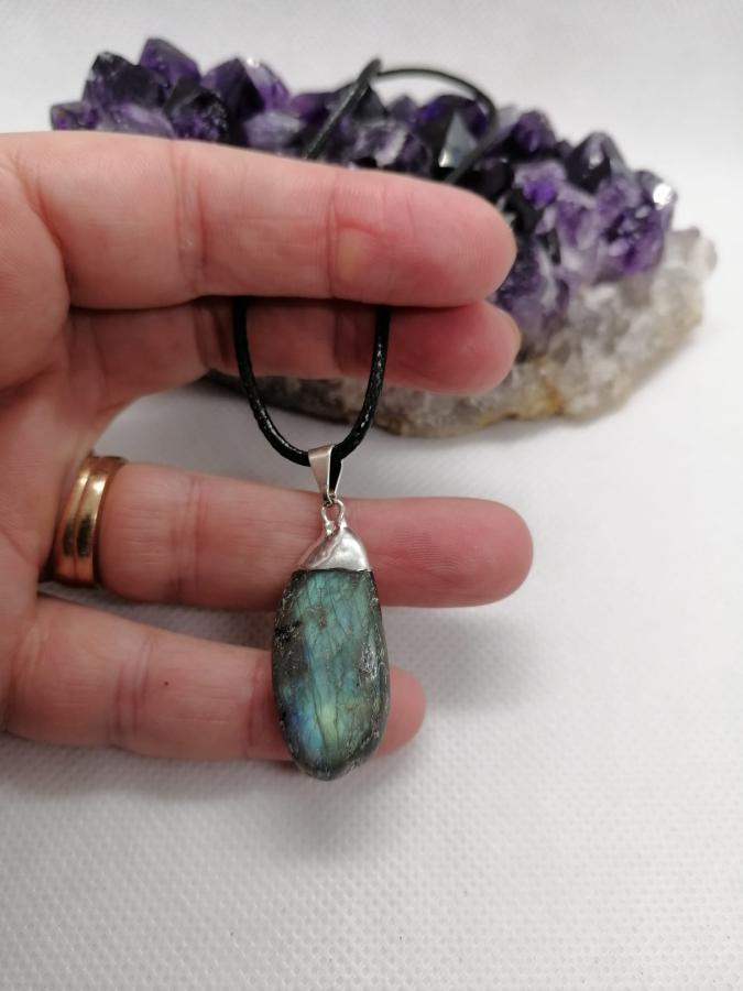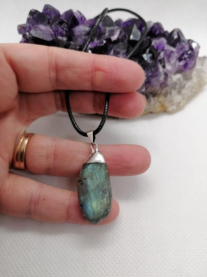 Dije con electro en piedra natural labradorita con cordón negro.