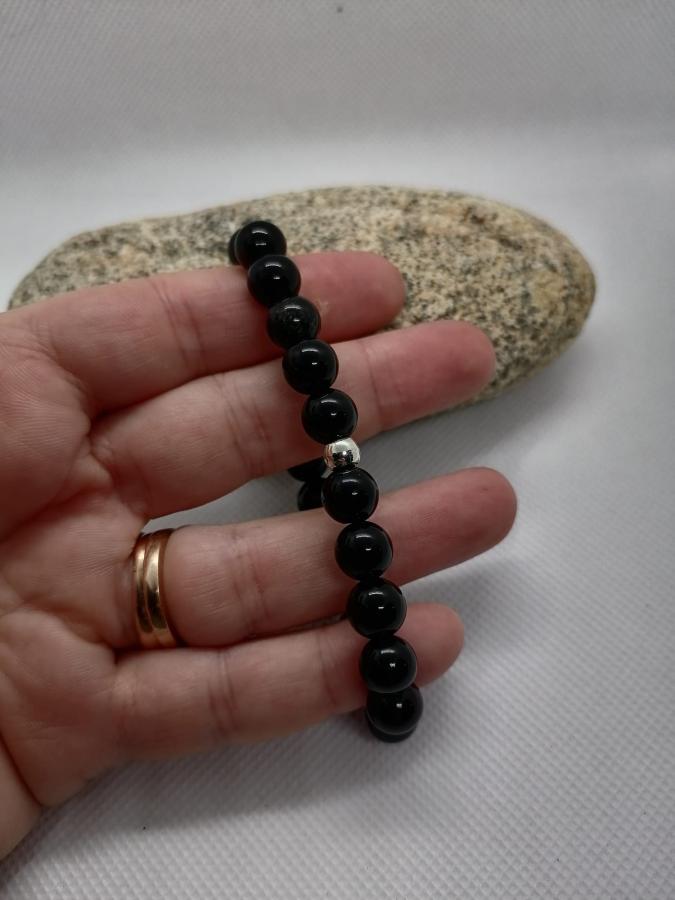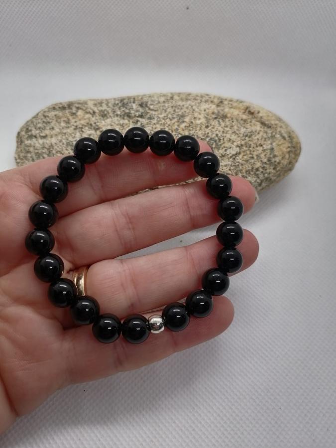 Pulsera en piedra natural ónix en bolita de 8 mm elástica