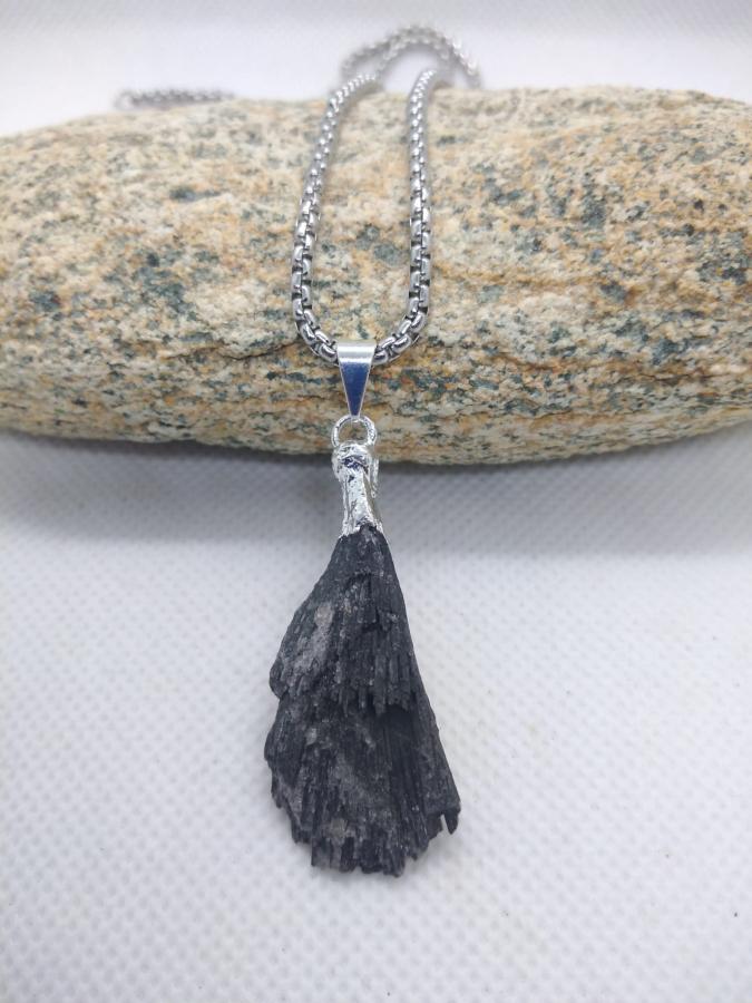 Dije con electro en piedra natural cianita o escoba de bruja con cadena gruesa de acero.