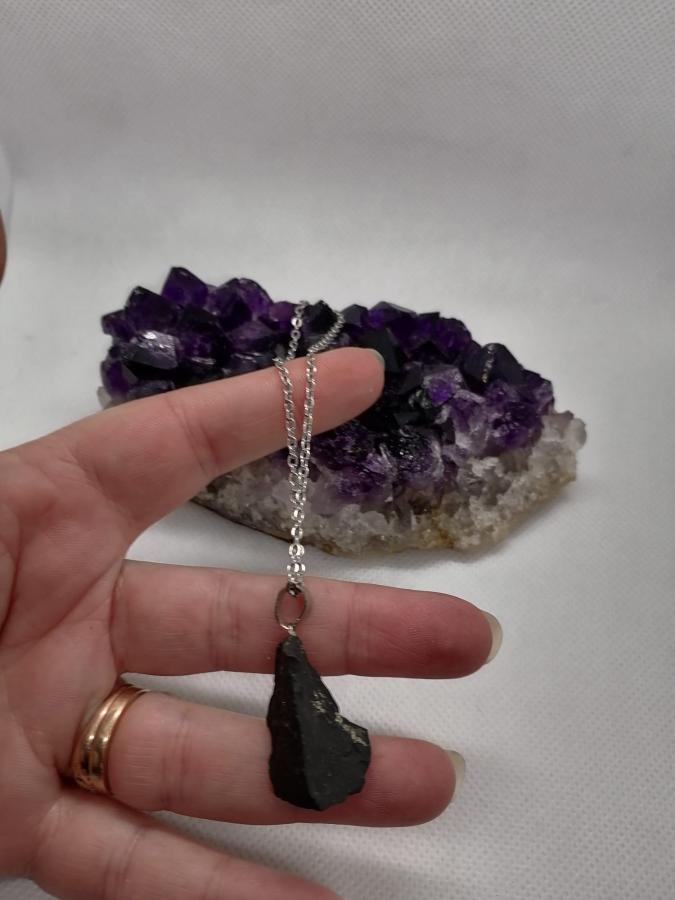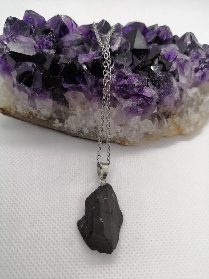 Dije en piedra natural en bruto shungita con cadena fina de acero