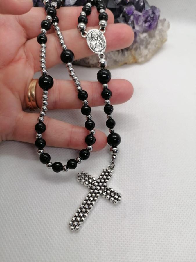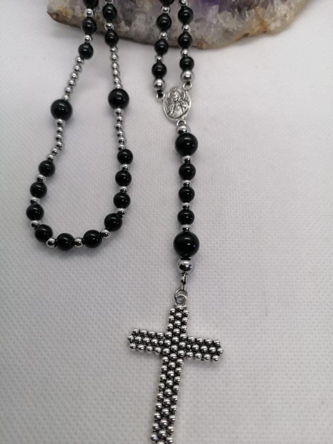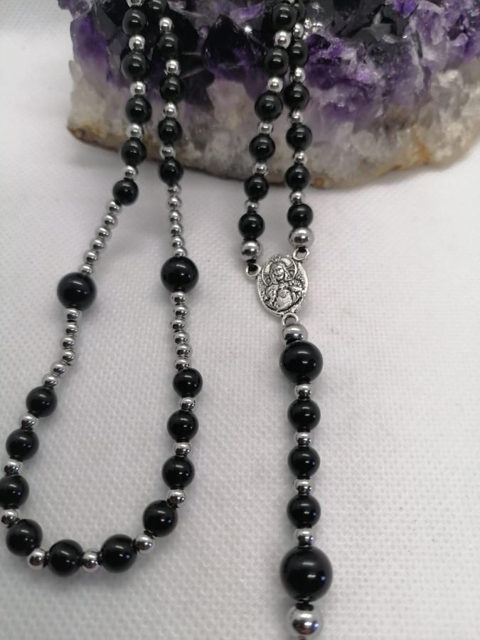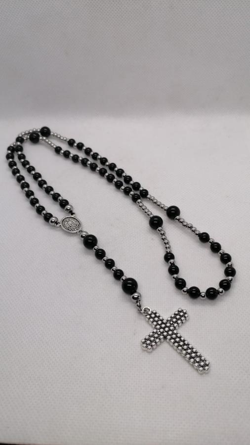 Rosario hecho artesanalmente en piedra natural obsidiana en bolita de 6 y de 8mm y acero.
