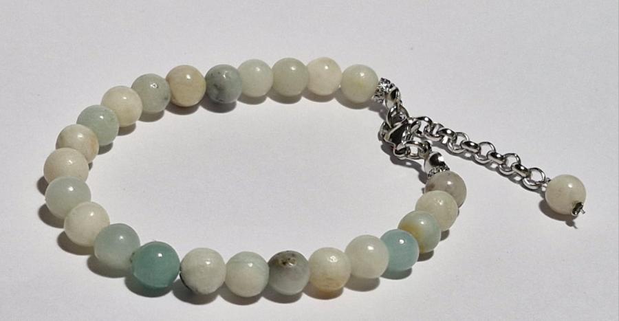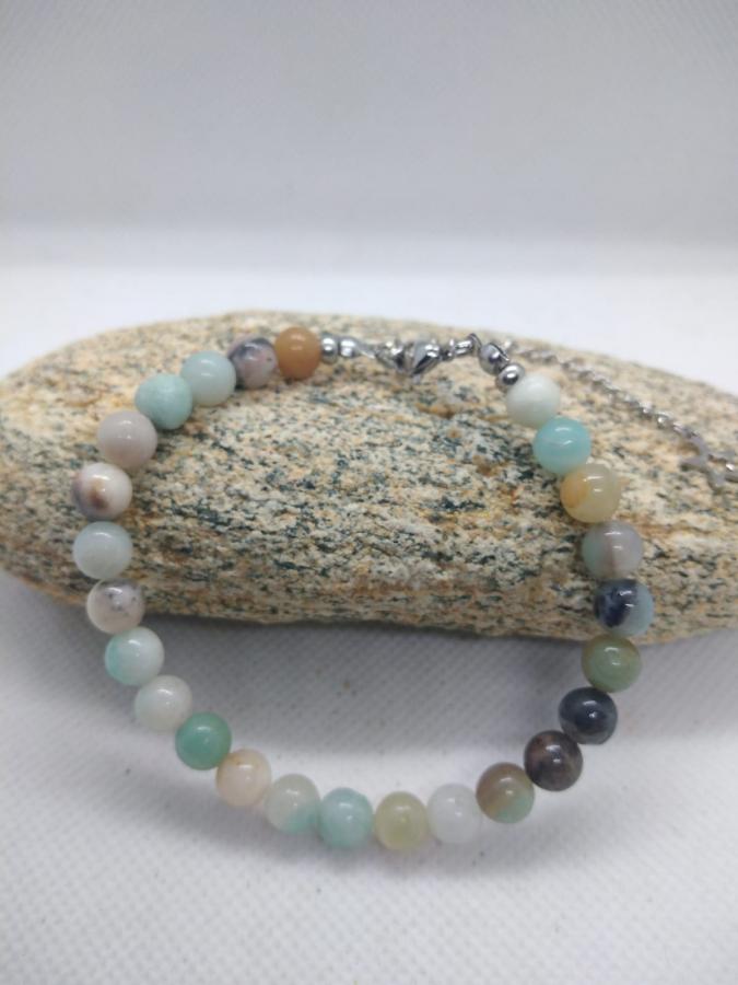 Pulsera en piedra natural en amazonita en piedra mixta en bolita de 6 mm con cierre de acero.