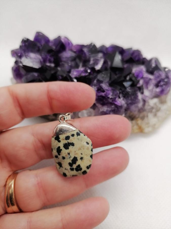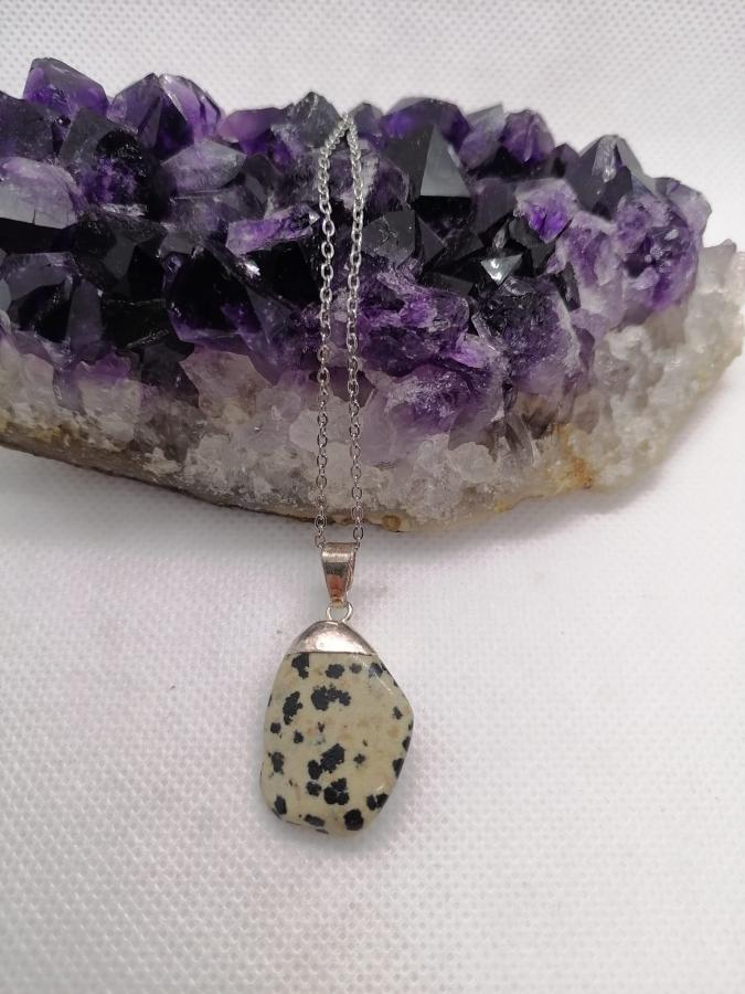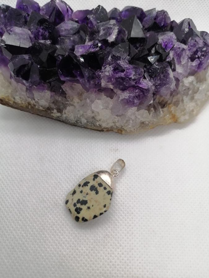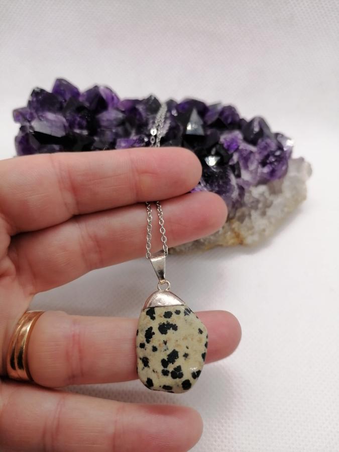 Se dice que el jaspe dálmata es una piedra eficaz para superar miedos y fobias irracionales, nos ayudará a conocernos mejor a nosotros mismos, refuerza los lazos que nos une a familia pero sobre todo a amigos, el jaspe dálmata absorbe las energías negativas.