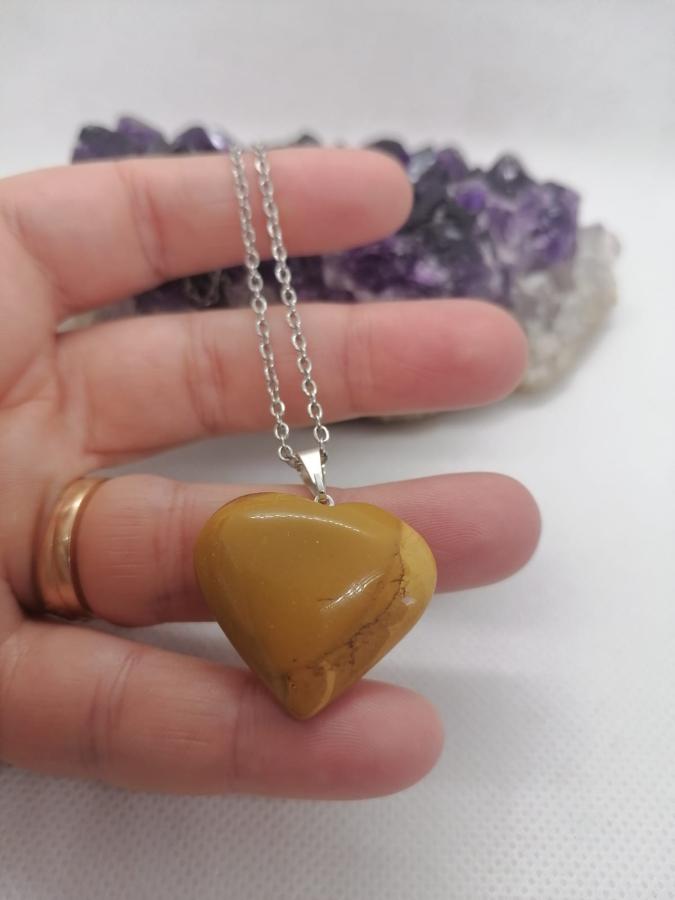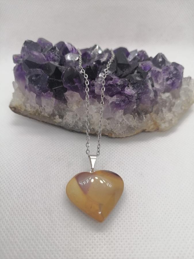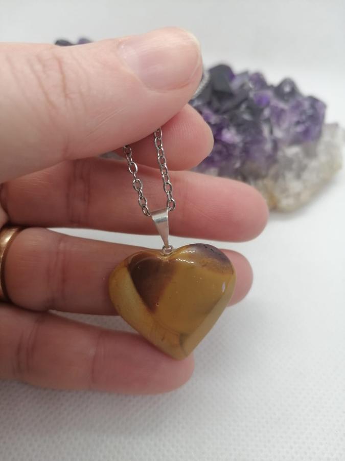 Dije corazón mokaita con cadena fina de acero.