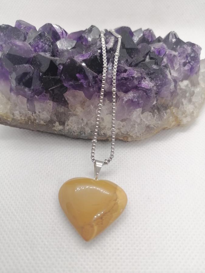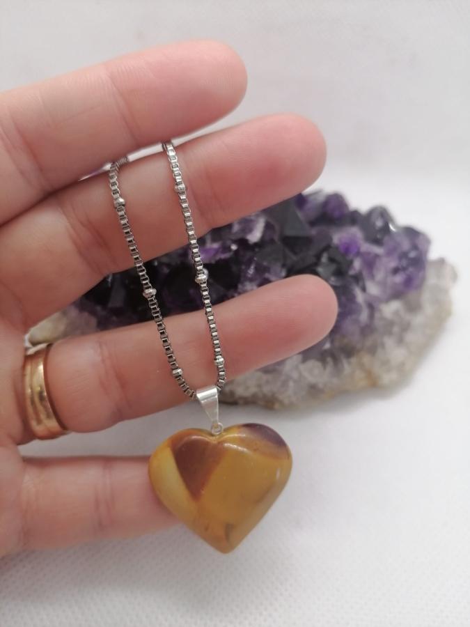 Dije Corazón GG Mokaita Mostaza con Cadena Gruesa de Acero